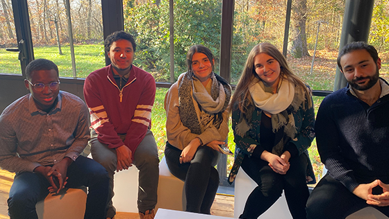 | | Nos alternants véliziens Cheikh, Yannis, Sarah, Éloïse et Daniel se sont retrouvés à l'occasion du cocktail de Noël, événement organisé à Jouy-en-Josas en fin d'année dernière. Ce fut un beau moment de partage au cours duquel ils ont échangé sur leurs missions et leurs études. En janvier, les nouveaux alternants ont participé, dans le cadre de leur intégration, à une réunion Teams où ils ont pu tous ensemble faire connaissance et poser de nombreuses questions. |