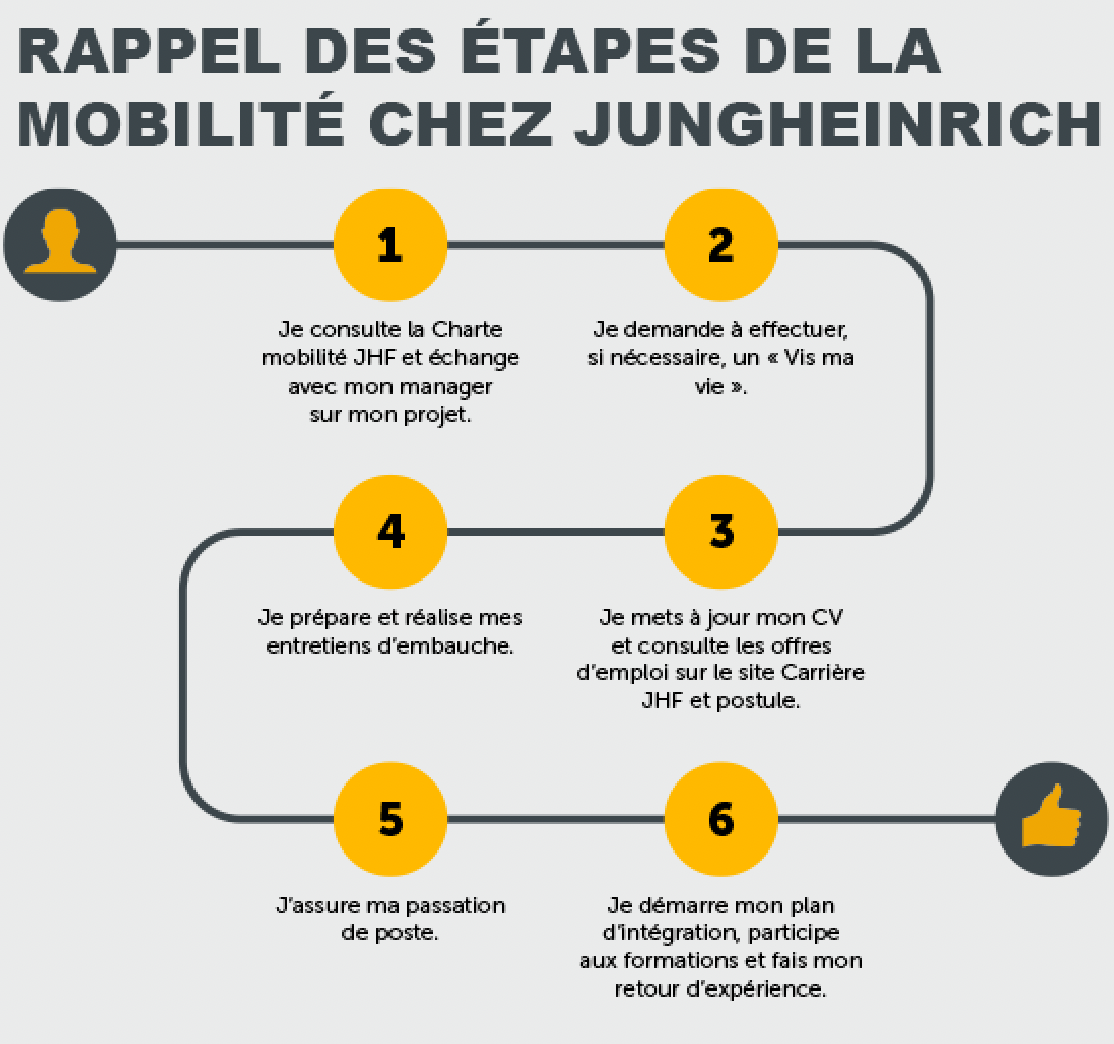 | | C'est le pourcentage de mobilité interne en 2022 chez Jungheinrich France. Près d’un poste sur trois a ainsi été pourvu en interne par un collaborateur ! Qu’il s’agisse de mobilité hiérarchique, fonctionnelle ou géographique, les perspectives d’avenir sont réelles. En témoignent notamment les expériences de Margaux, Laurent et Jérémy, à retrouver sur la page Carrière. |